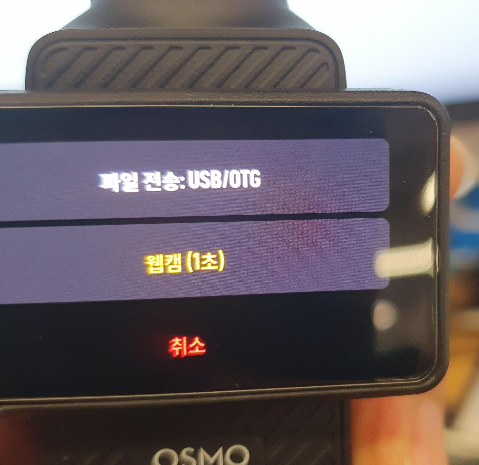 - 오즈모 포켓3 화면에서 “파일 전송(Transfer File)” 모드를 선택하면,